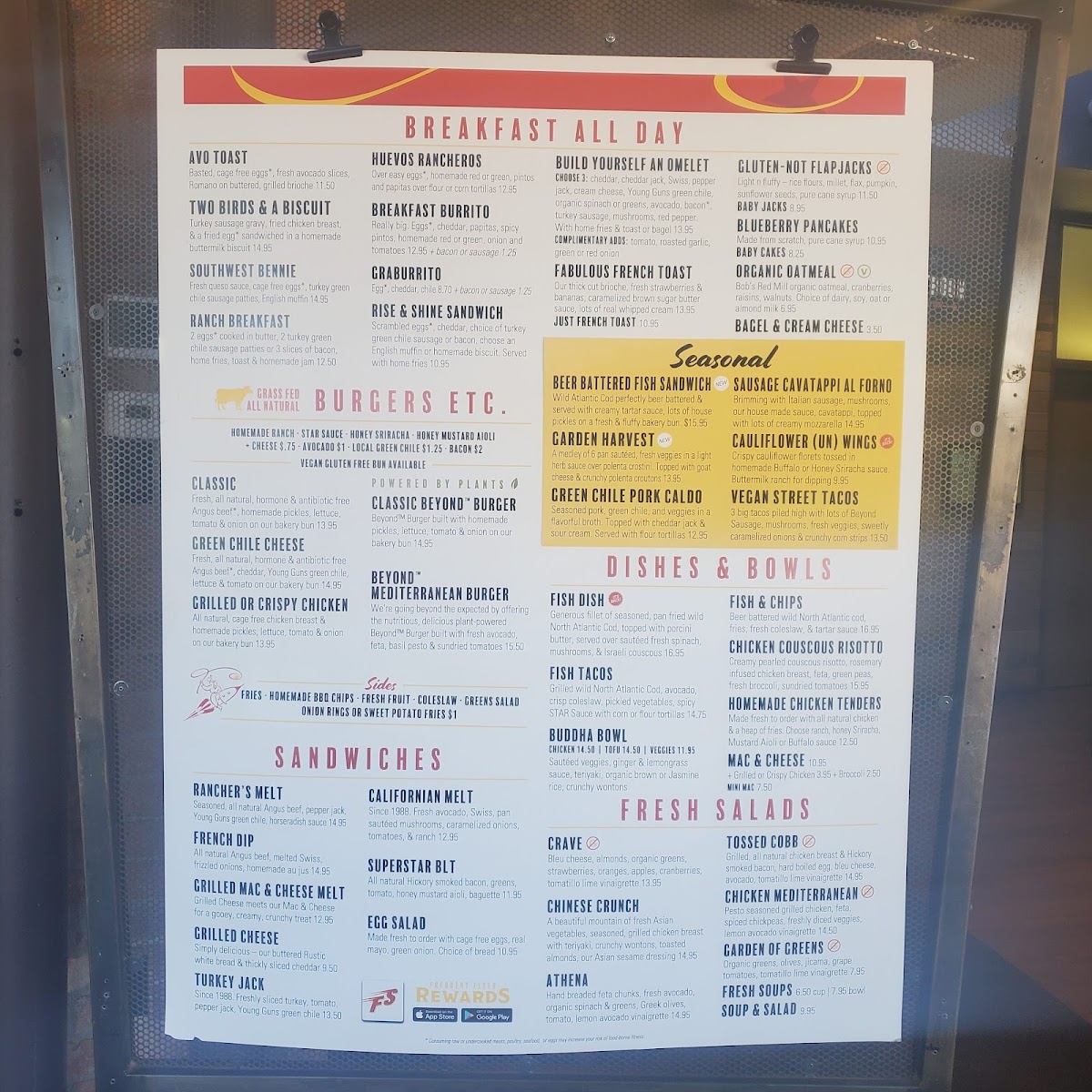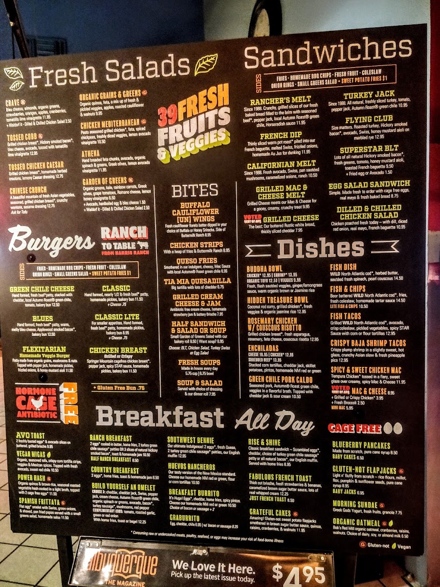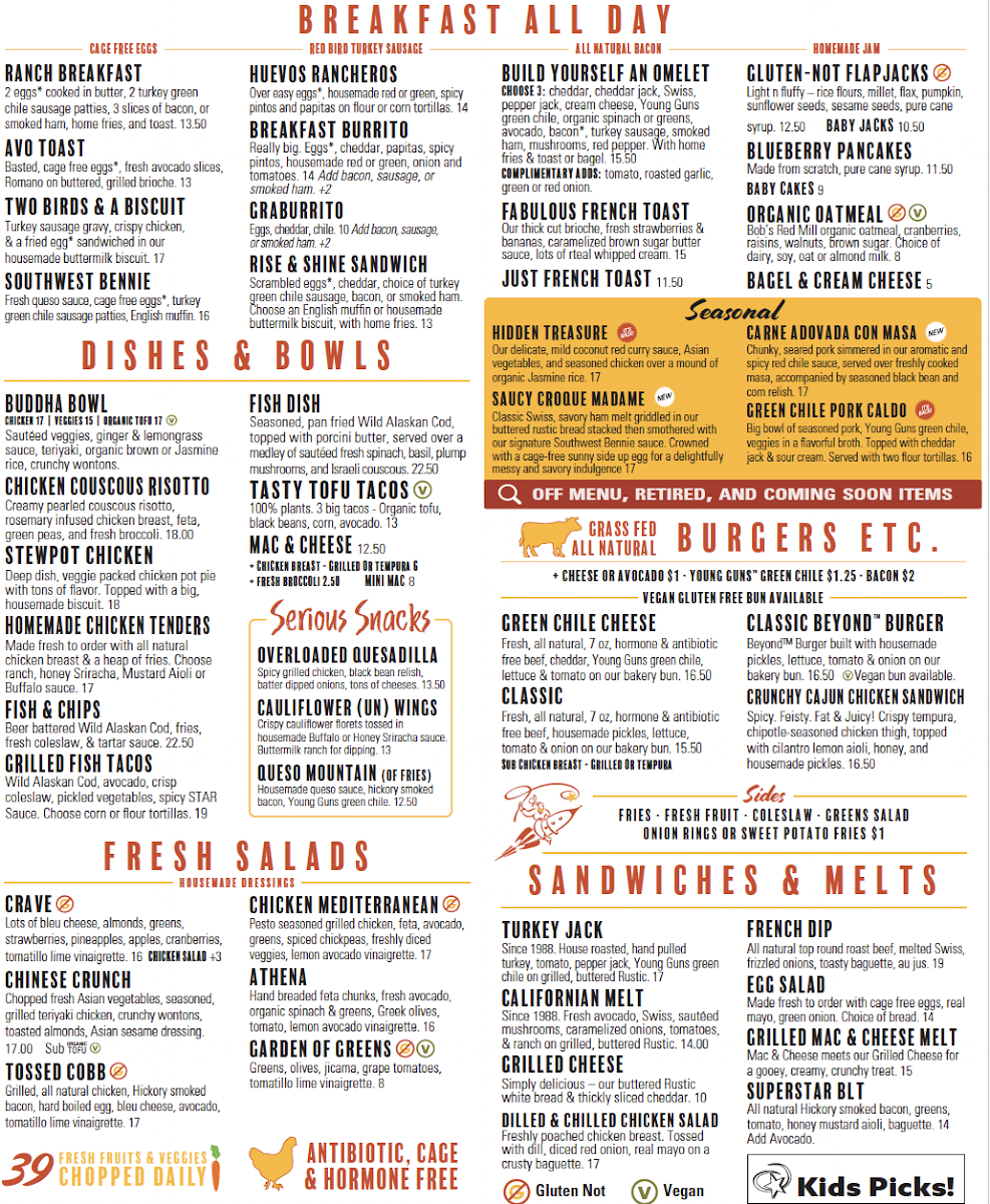 7 ounces of fresh, all-natural, hormone & antibiotic free Angus beef, cheddar, Young Guns green chile, lettuce & tomato on our bakery bun.